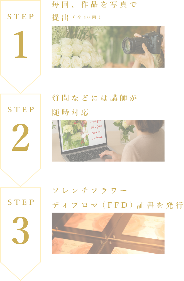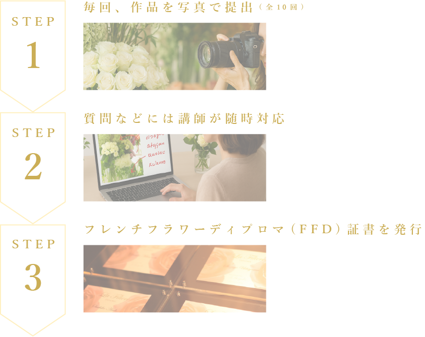 日本の花屋として初めてパリに支店を構えて10年。多くのご縁に恵まれながら得た経験を学びを、日本のお客様や花仲間へ恩返しとして届けたい。そんな想いから、このオンライン講座を始めました。